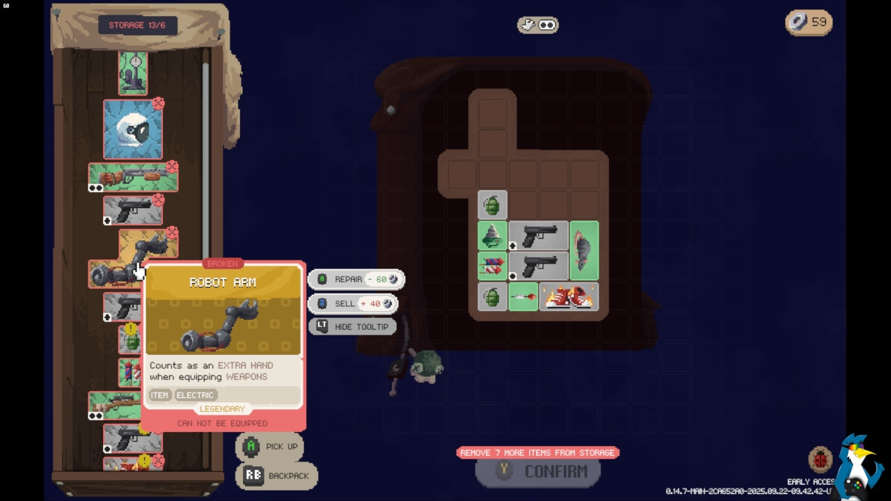Если повезёт отыскать легендарную Robot Arm, получится утащить ещё парочку пушек. Но это же inventory Tetris, а значит, и эта рука съедает драгоценное место в рюкзаке. Вечная дилемма: освобождать клетки хочется — кому не нравятся дополнительные стволы?
