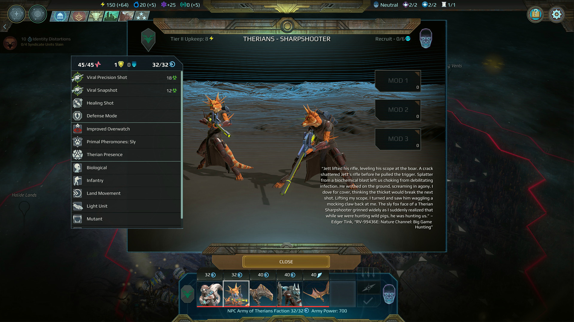 ● Therian: воинственные представители этой изобретательной неигровой расы решили ускорить эволюцию, смешав свою ДНК с животными. Эти непредсказуемые бойцы бежали с родной планеты, выбрав лидером загадочную Дир. Они хотят колонизировать новые миры, и вам не удастся застать их врасплох! Они могут стать как надежными союзниками, так и грозными соперниками.