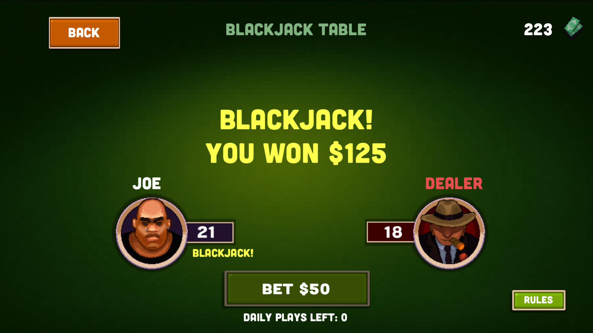 Заработок можно потратить на развитие профессиональных навыков, оплату аренды или погашение долга перед мафией, а если вы чувствуете, что вам сегодня везет, можно рискнуть и сыграть в блек-джек.