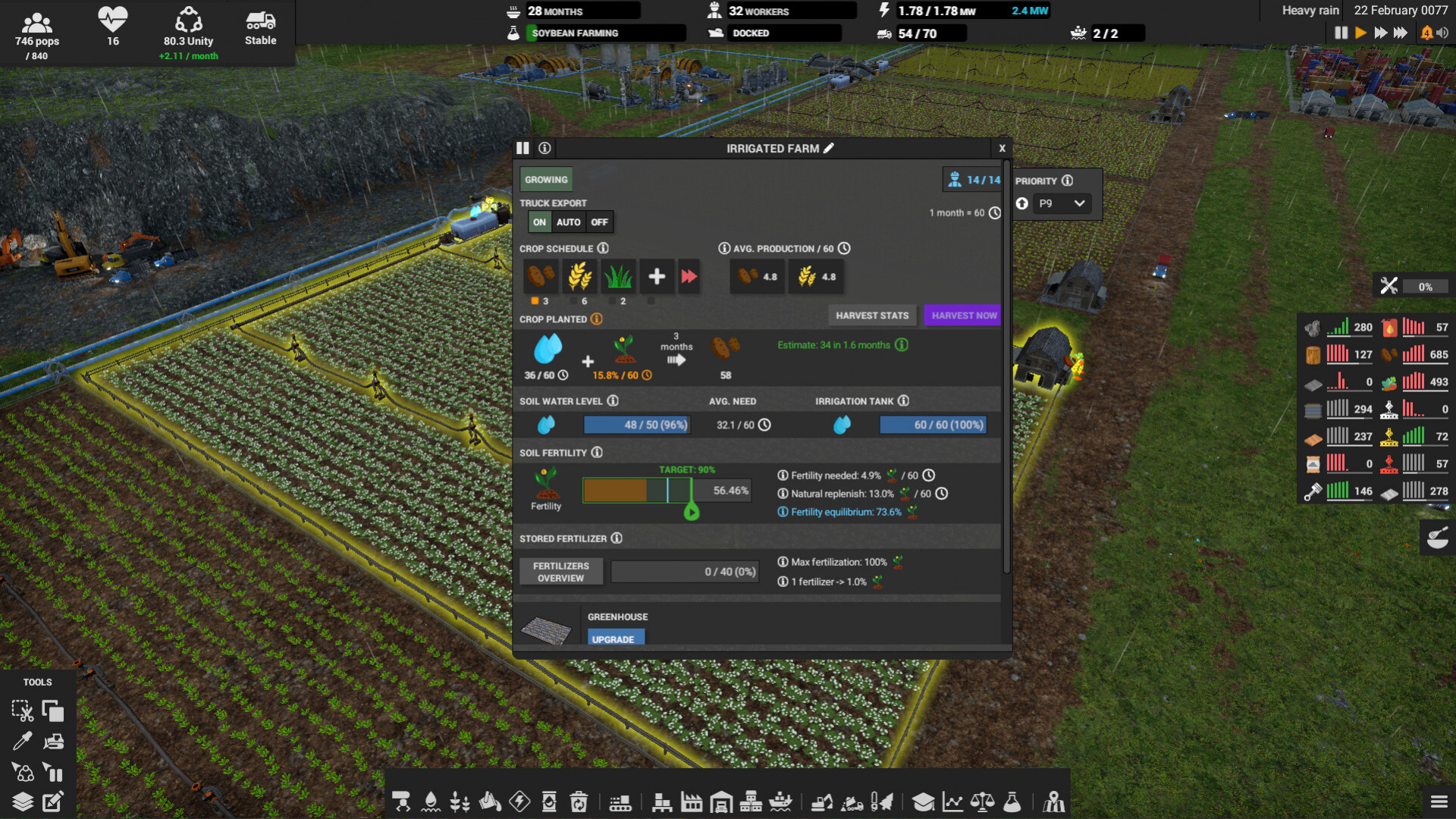 Поначалу придется выращивать картофель на плантациях, чтобы прокормить своих жителей, пока не станут доступны другие культуры - пшеница или бобы, пригодные для производства разных видов пищи. Можно будет даже производить удобрения и использовать теплицы, чтобы пищи было достаточно.