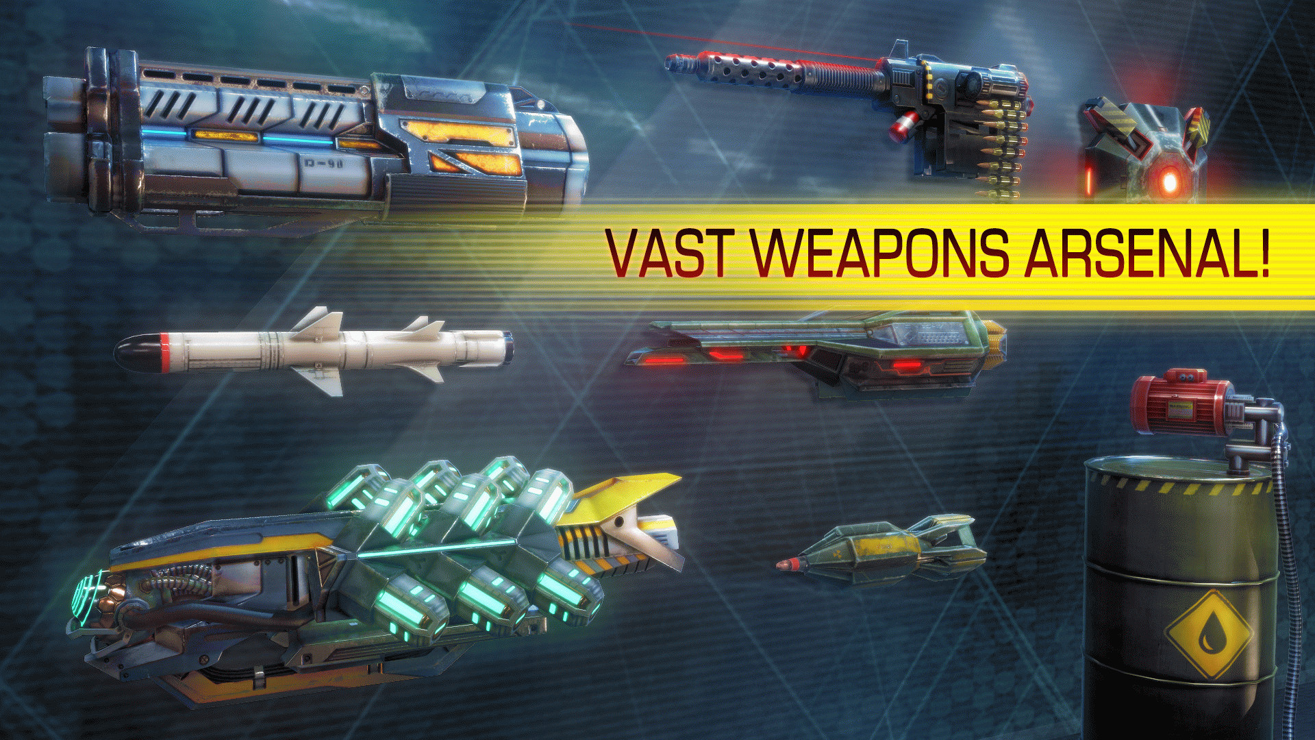 ✔ Широкий выбор оружия - пулемет, лазер, мины, ракеты, мортира, и многое другое!