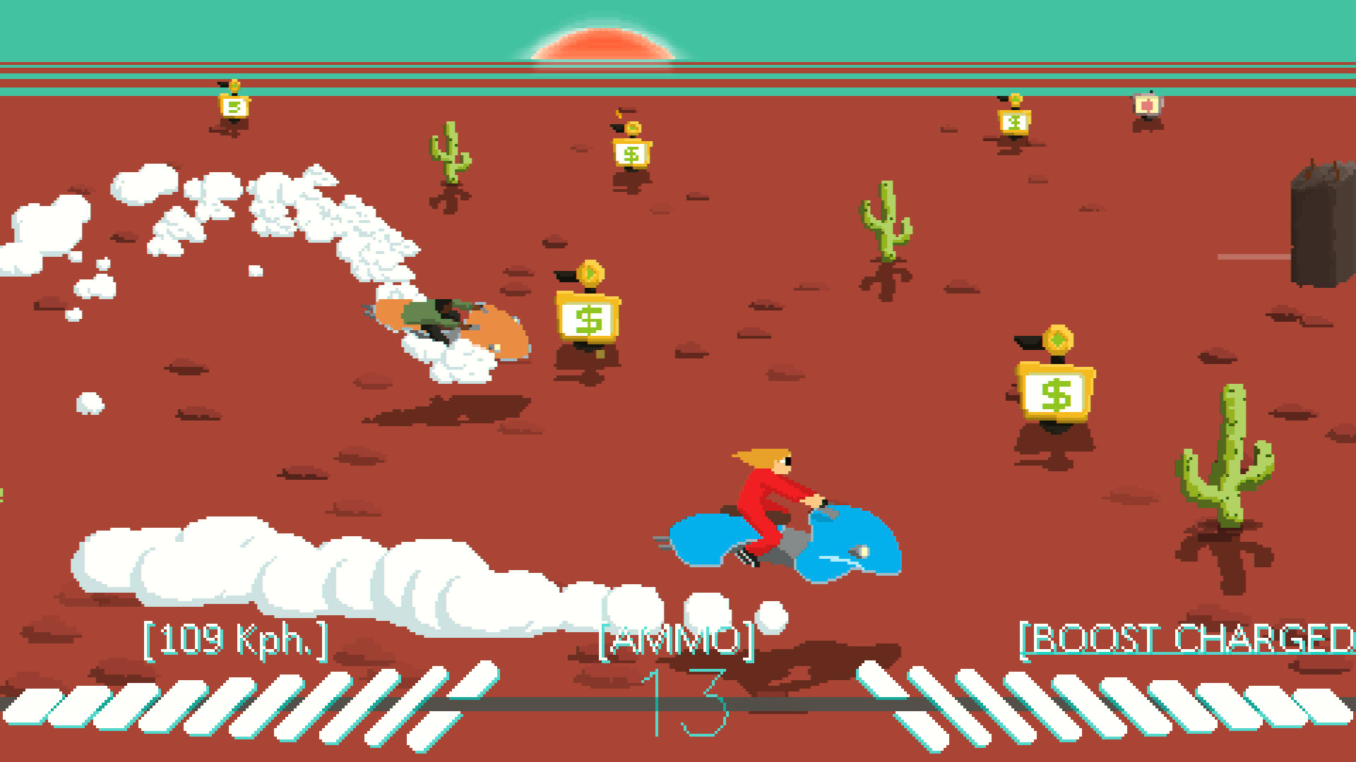 В игре Desert Child вы сыграете за молодого и талантливого гонщика на ховербайках. Ему нужно придумать, как наскрести достаточно денег на гонках и подработках, чтобы купить билет в один конец на Красную Планету и принять участие в самой крупной гонке вселенной, Гран-При.