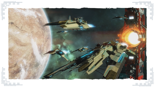 Флоты Хишшо сочетают силу и гибкость. Многочисленные многофункциональные ячейки позволяют подключать как атакующие, так и оборонительные модули, поэтому флот легко переключается с прямого наступления на тактику уклонения и обратно.