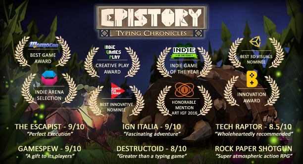 В Epistory вы играете роль музы, вымышленного персонажа в мире недописанных рассказов. Ваши приключения начинаются на чистой странице, но очень скоро, когда вы начинаете набираться вдохновения, игровой мир начинает расти, а вы сражаетесь в нем с врагами и разгадываете его тайны. Перемещение, открытие сундуков, сражение в эпических битвах - все в этой игре выполняется печатанием слов, и каждый раз это выглядит по-разному.