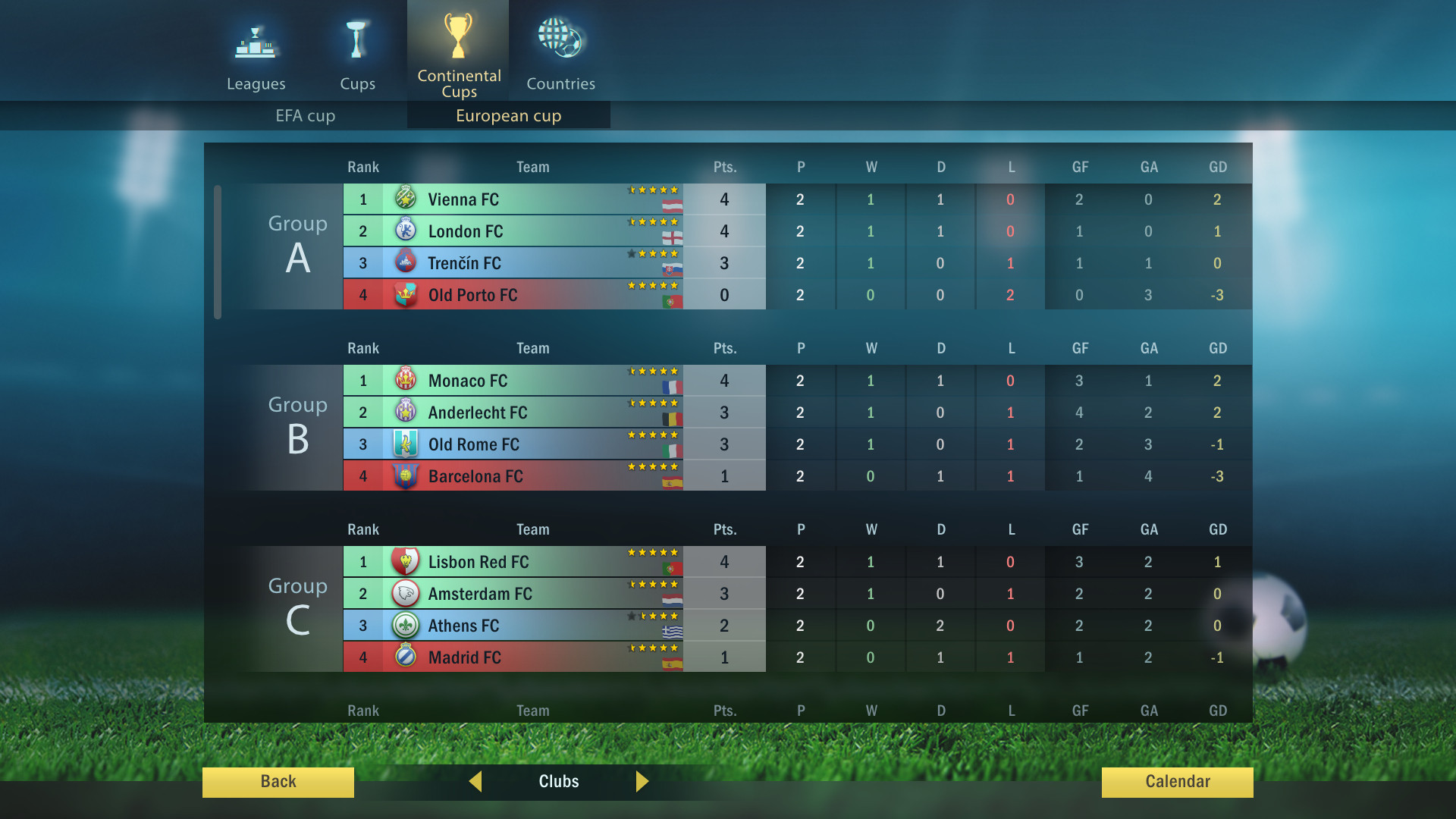 - Живой футбольный мир, в котором клубы сражаются в разнообразных турнирах с повышениями и вылетами;