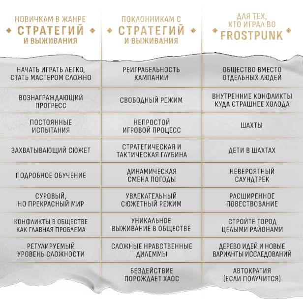 Наш город, уютно расположившийся вокруг спасительного теплого генератора в первой части Frostpunk, разросся, как впрочем и сама игра. Годы мороза не прошли бесследно, что позволило написать новую главу постапокалиптической истории. И несмотря на то, что гайки закручиваются, а общество все еще борется за жизненно необходимые ресурсы и погрязло в распрях, мир вновь начал оживать. Самое важное во всем этом то, что изменились люди. Как только им кажется, что они укротили мороз, и стужа им больше не грозит, наружу вылезают низменные человеческие инстинкты. Приведет ли это к кончине города?