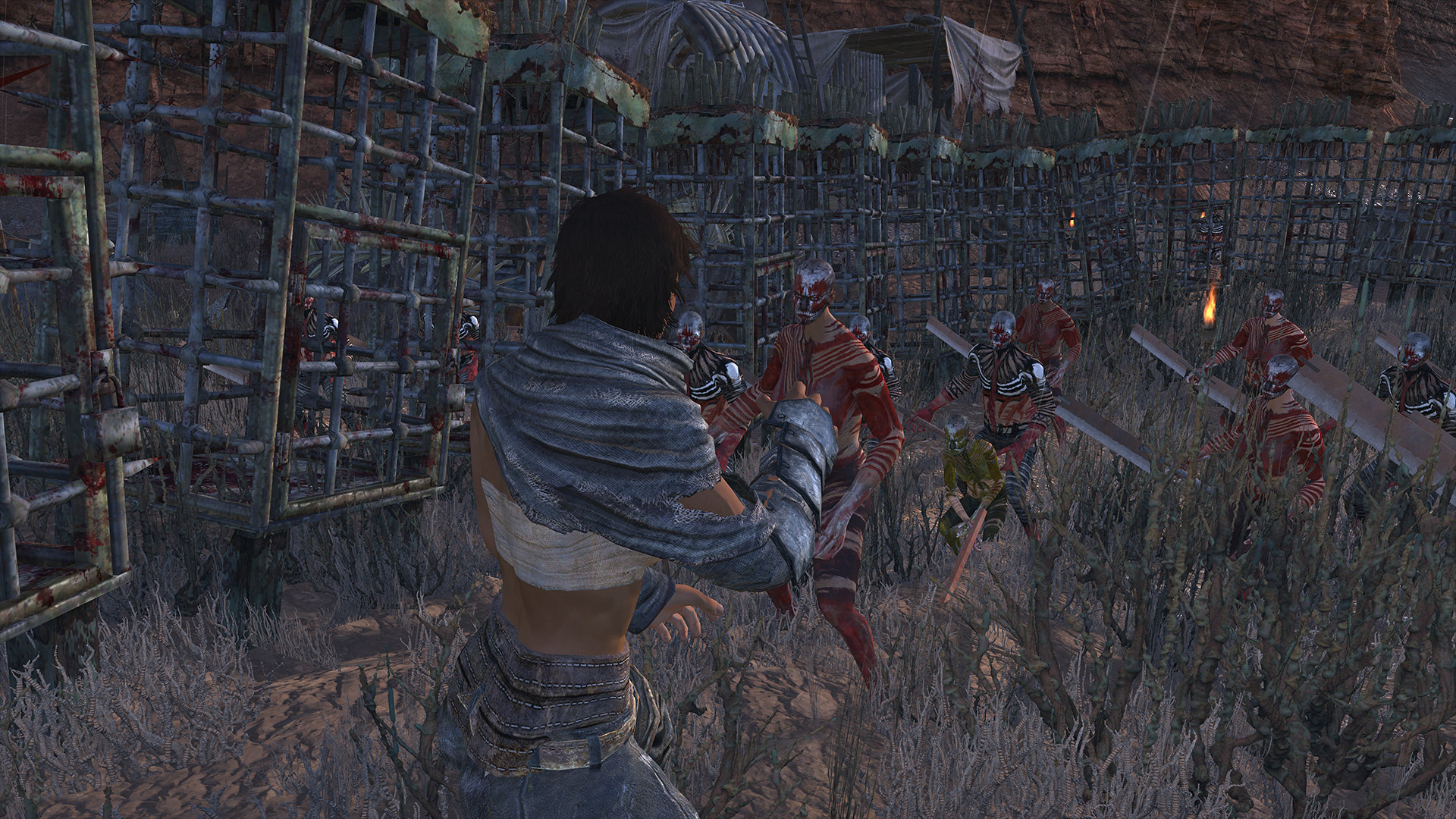 Совершенно никакой подстройки к уровню. Мир не повышает уровень вместе с вами, а магазины не меняют свой ассортимент на только подходящие вам по уровню предметы. В начале игры, почти все будут сильнее вас, и вам постоянно придётся бороться за выживание. Игра не будет вести вас за руку, или помогать, если вы упали.