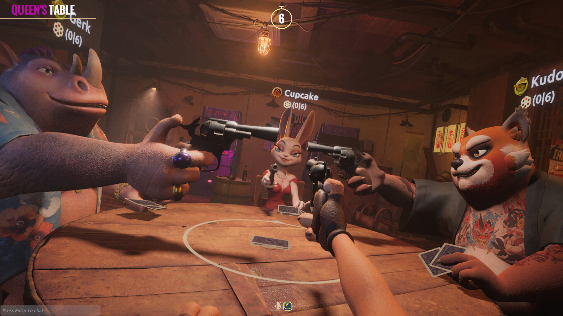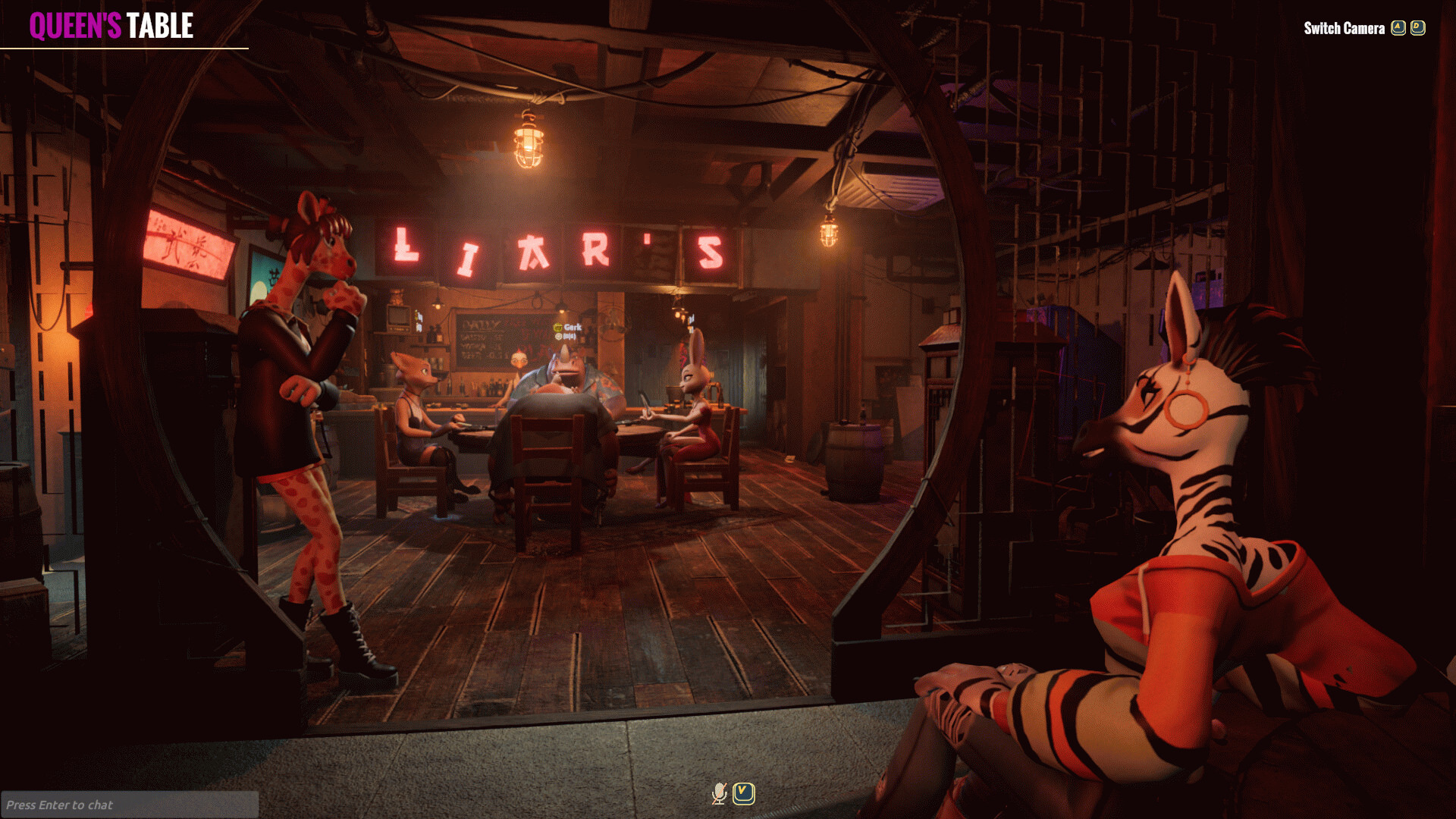 Загляните в Liar's Bar — самое мрачное и захватывающее заведение в городе. Это не обычный паб — это логово лжи, обмана и психологических игр. Займите место за столом на четверых и погрузитесь в захватывающий многопользовательский онлайн-экшен от первого лица, где хитрость и уловки — это ключ к победе.