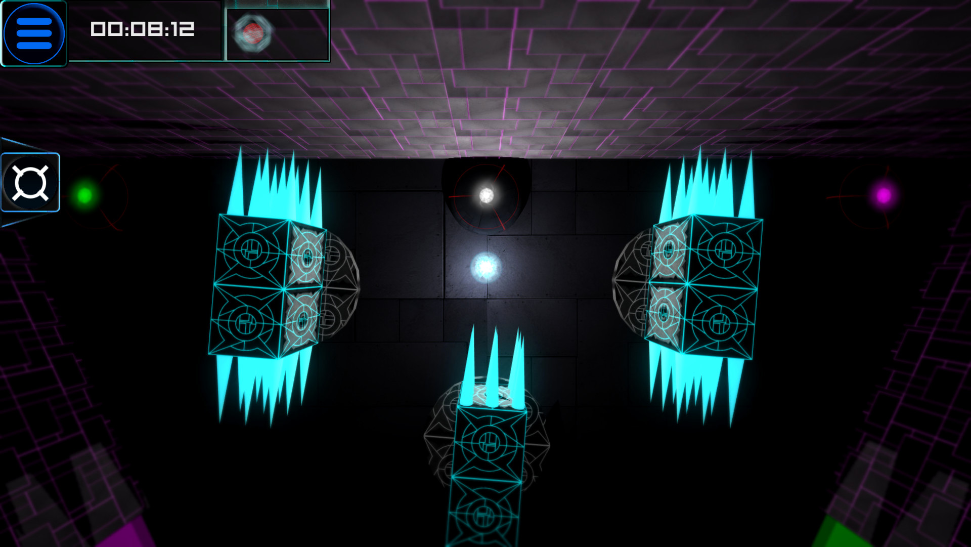 Поиск лабиринты, чтобы найти "глюки" и разблокировать более сложные лабиринты и головоломки. Играть случайно или бороться в часы в каждом уровне времени судебного разбирательства.
