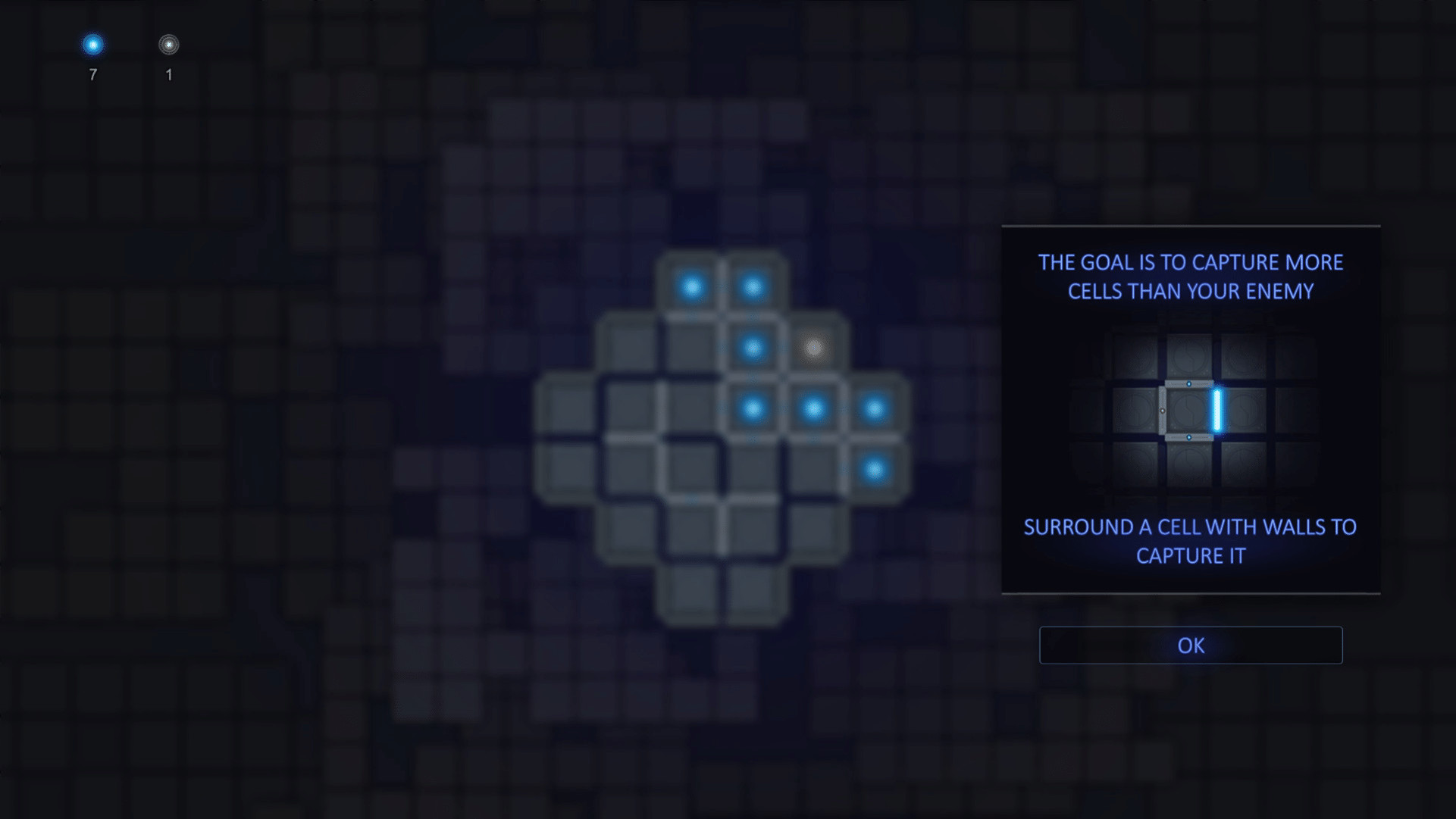 Ставьте стены, стройте лабиринт, захватывайте ячейки игрового поля. Не допускайте появления замкнутых углов, чтобы их не захватил враг.