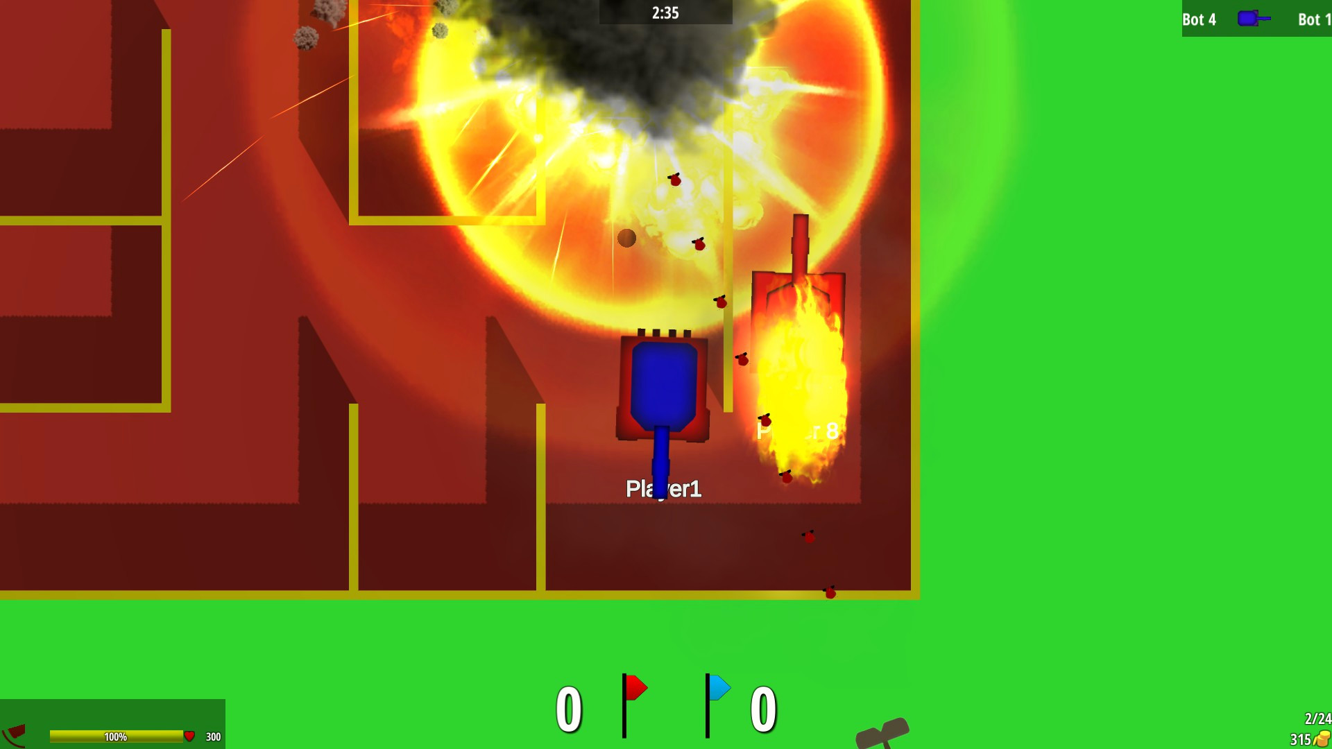 • В игре есть разные режимы игры: Командный бой, Захват флаг, Каждый за себя.
