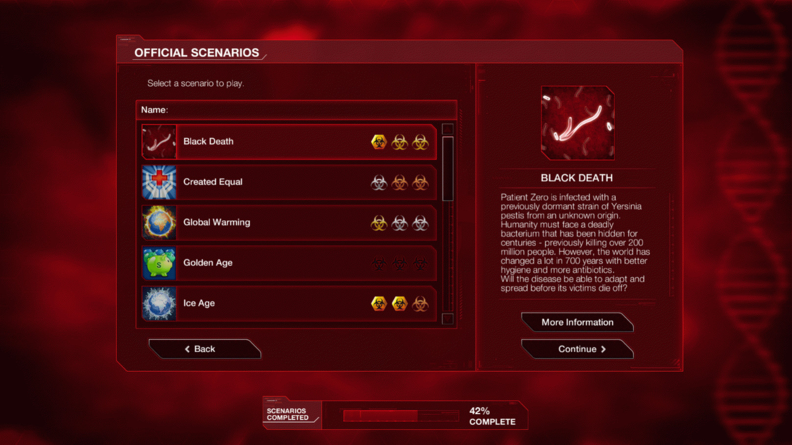- 20 уникальных сценариев — нужно придумывать различные стратегии для того, чтобы ваша эпидемия преодолела все препятствия. Как вы справитесь с новой разновидностью свиного гриппа? А как сумеете заразить весь мир в ледниковый период?