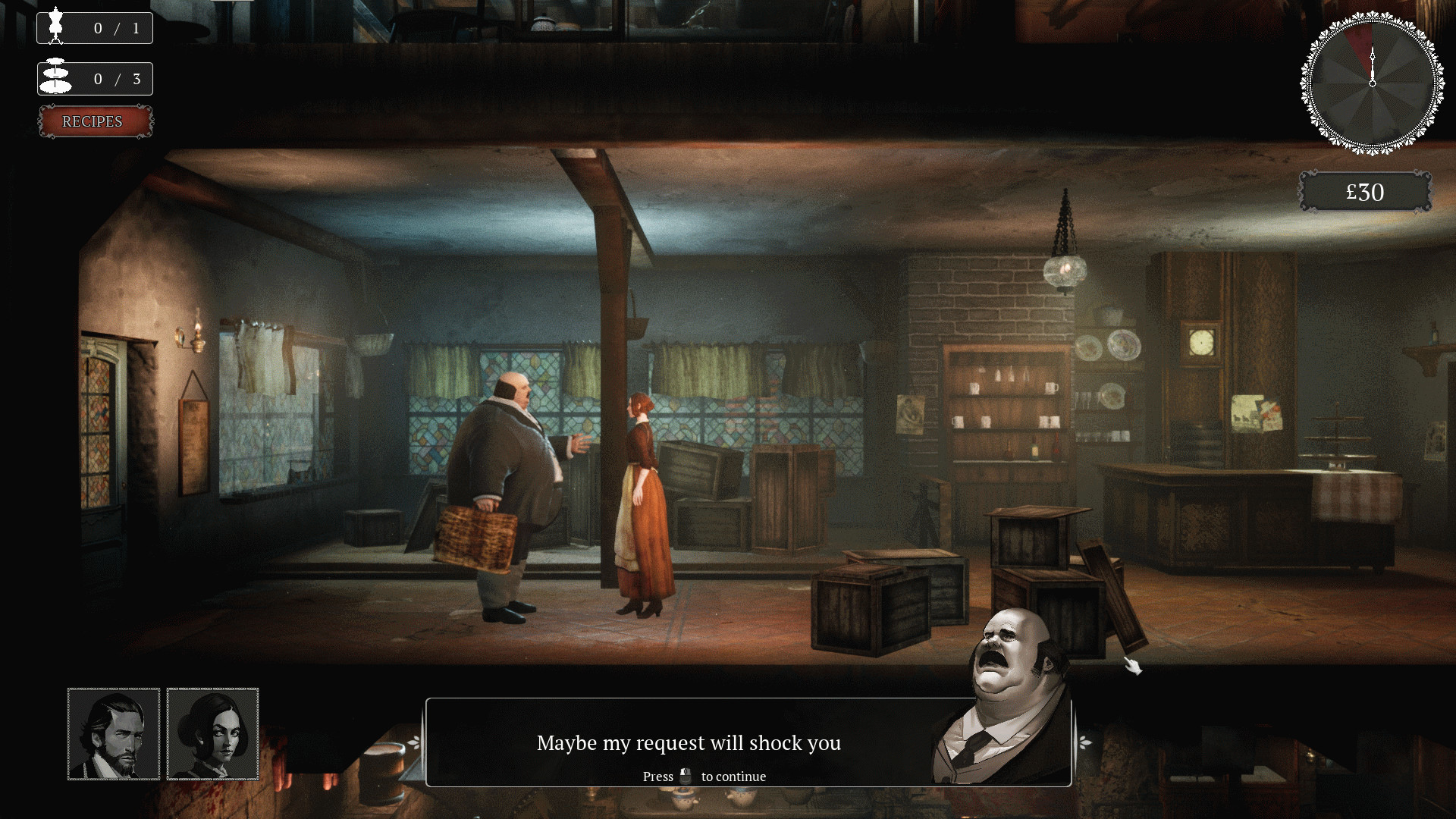Улучшайте репутацию лавки, приобретая новые инструменты и совершенствуя ателье и паб, но будьте осторожны... все тайное становится явным.