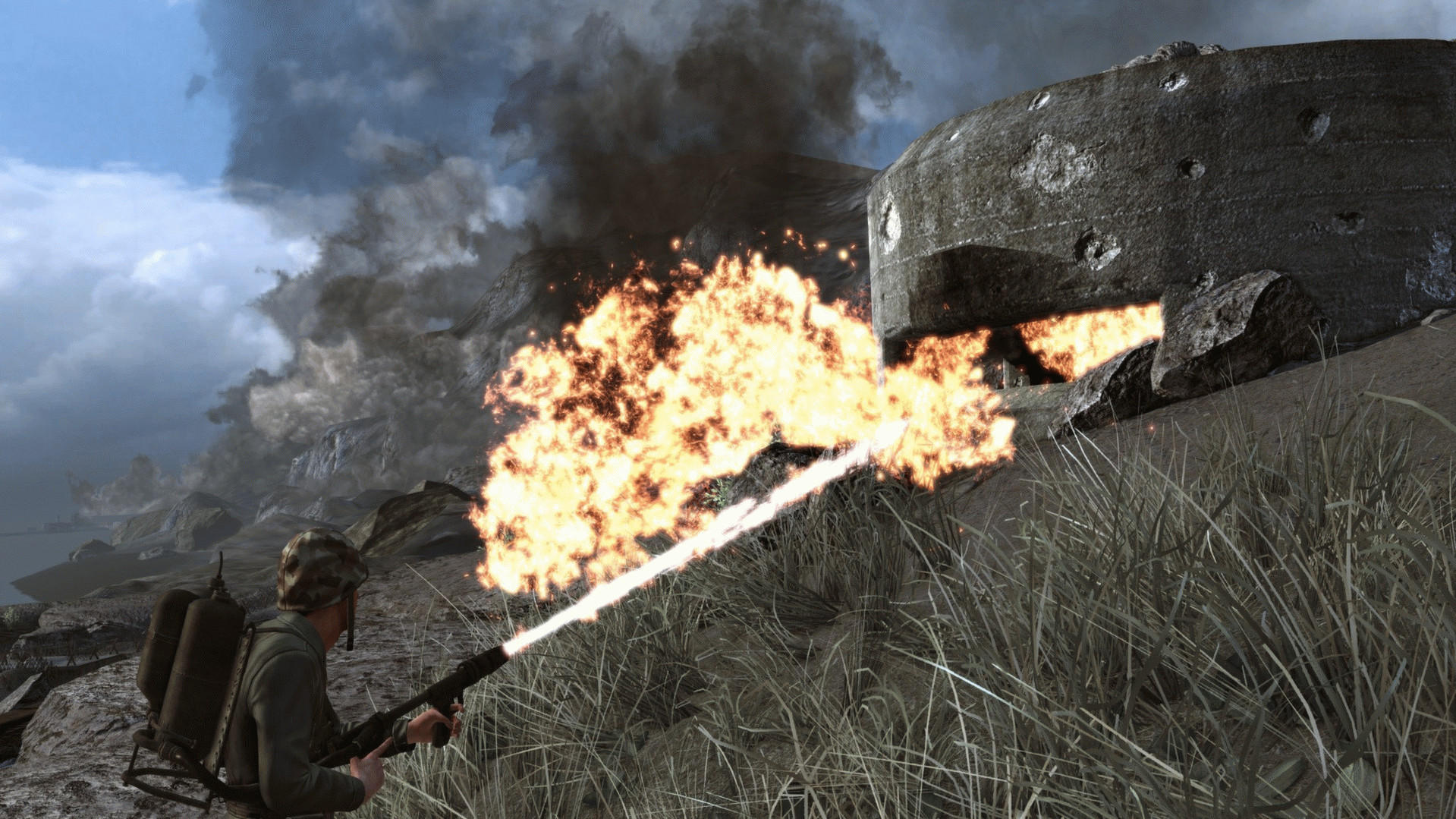 - И снова — свежий взгляд на оружие Второй мировой: привычная для франшизы работа оружия, в том числе реалистичная баллистика, пробивание пулями, дыхание, регулируемые прицелы, свободное наведение, установка на сошки и многое другое — вы сможете взглянуть на оружие Второй мировой войны совершенно по-новому. К этому добавляется более 20 новых видов оружия, включая устрашающий огнемет и японский ручной миномет.