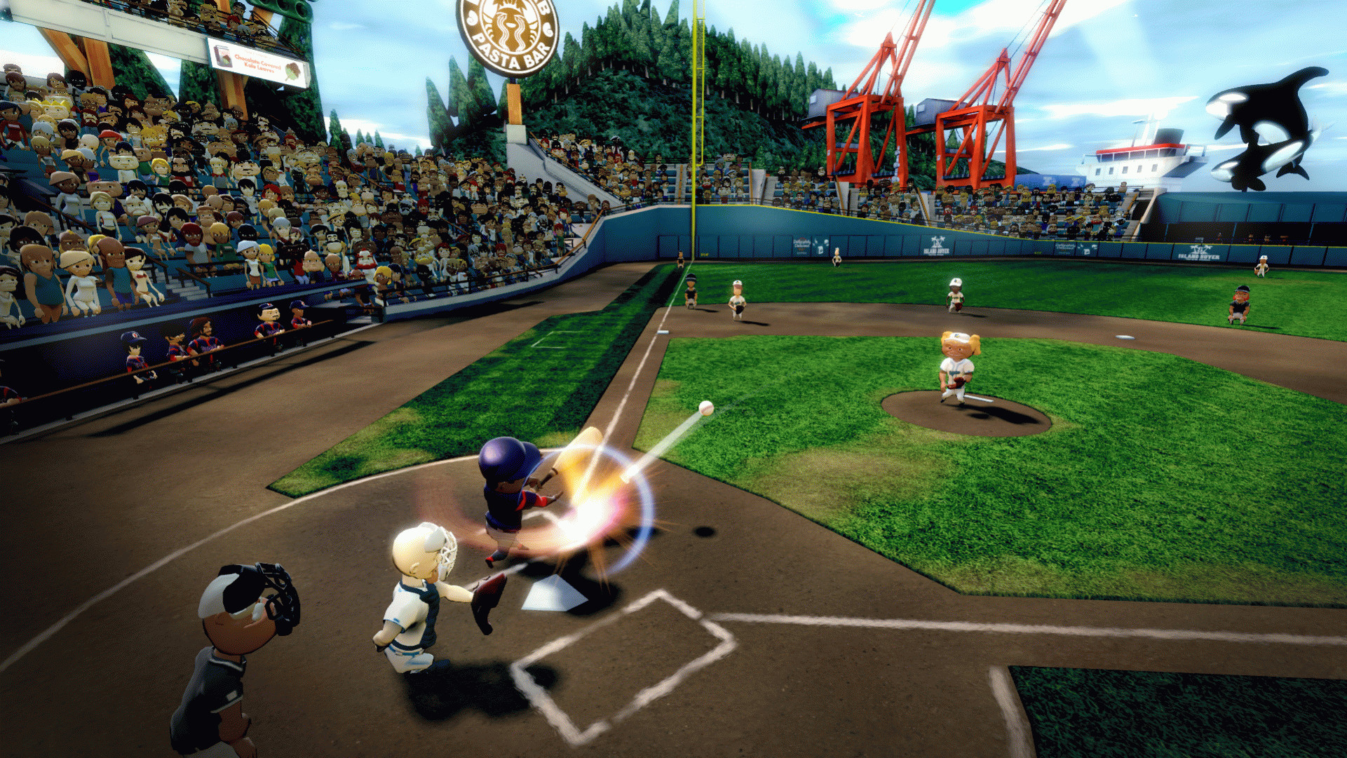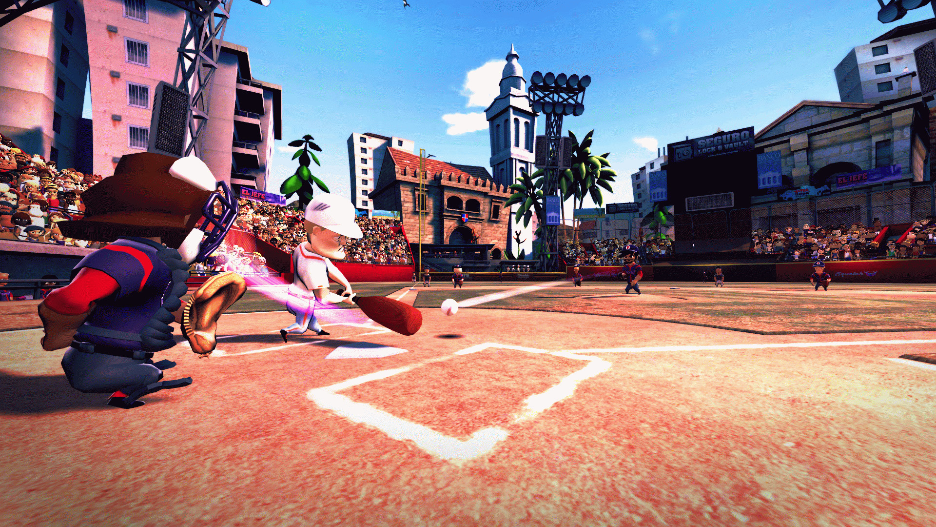 Реалистическое воспроизведение и физика: пусть беззаботная/смешная презентация не вводит Вас в заблуждение; основы бейсбола хорошо представлены, и если кто-то не знаком с правилами, он точно будет их знать после игры в Супер Мега Бейсбол.