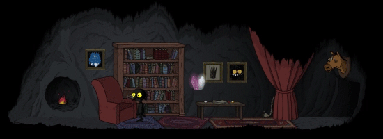 Исследуйте пещеру и собирайте предметы для вашего уютного подземного жилища. Просто отправьте Теня на прогулку — ходит он небыстро, но и нам спешить некуда.