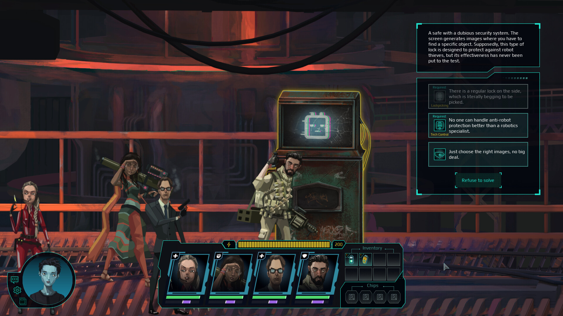 - В эпоху киберпанка энергия нужна как воздух: обеспечьте агентов перед заданием достаточным количеством аккумуляторов для подзарядки, иначе оружие и импланты отключатся, а часть умений станет недоступна.