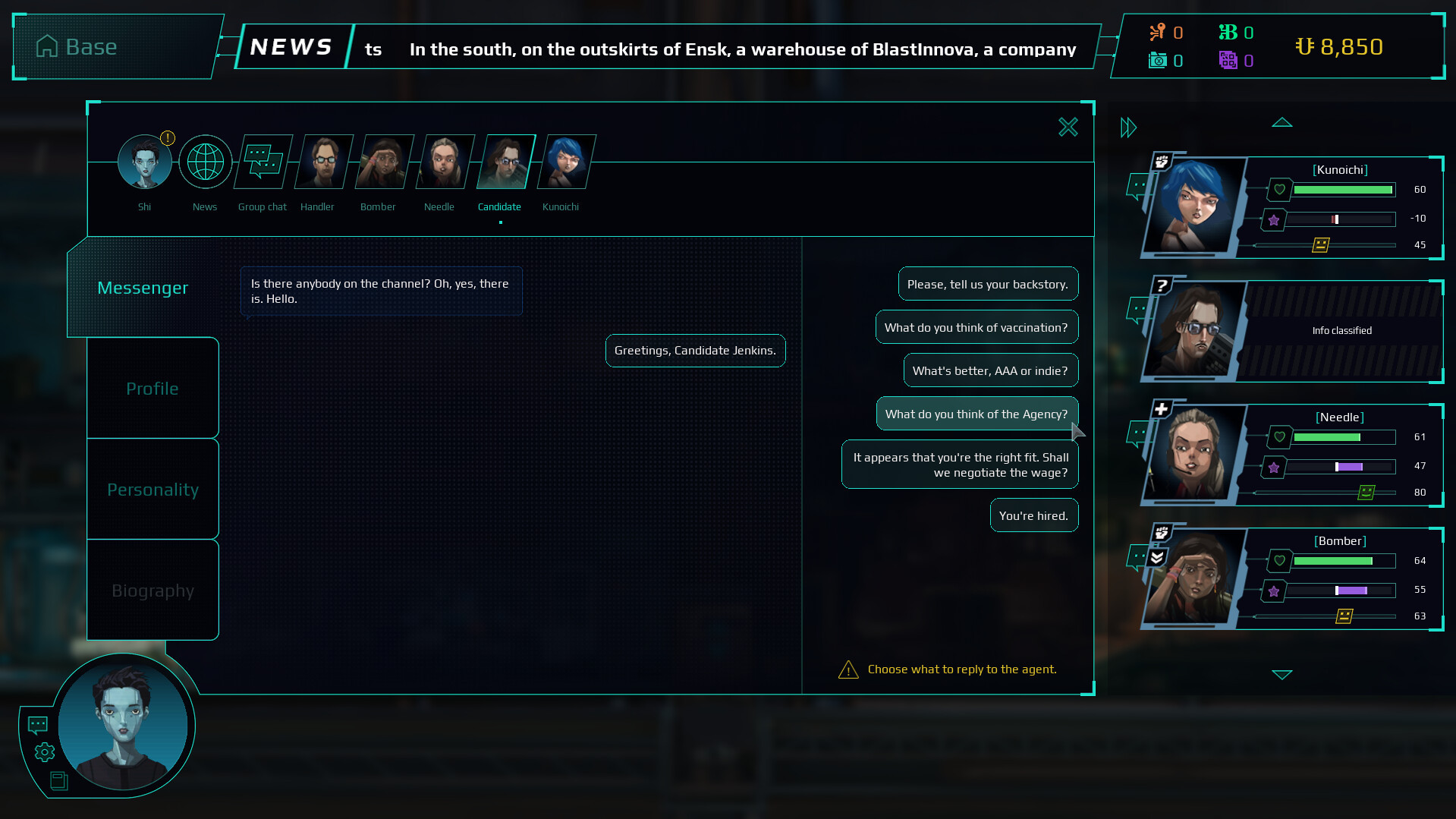 - Каждый агент — личность: следите за уровнем стресса и лояльности, учитывайте их страхи и причуды, а также взаимоотношения в отряде. Это может уберечь вас от провала миссии, ухода специалистов из агентства или их гибели.