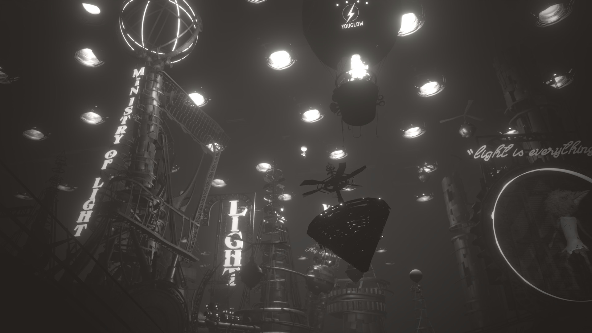 Удивительная архитектура мира игры White Shadows в сочетании с великолепной монохромной стилистикой создает невероятно глубокую и захватывающую атмосферу. Это лишенный всяческой надежды мир, где лживые речи элиты красуются на каждой городской стене, а для управления массами используются различные изощренные развлечения.